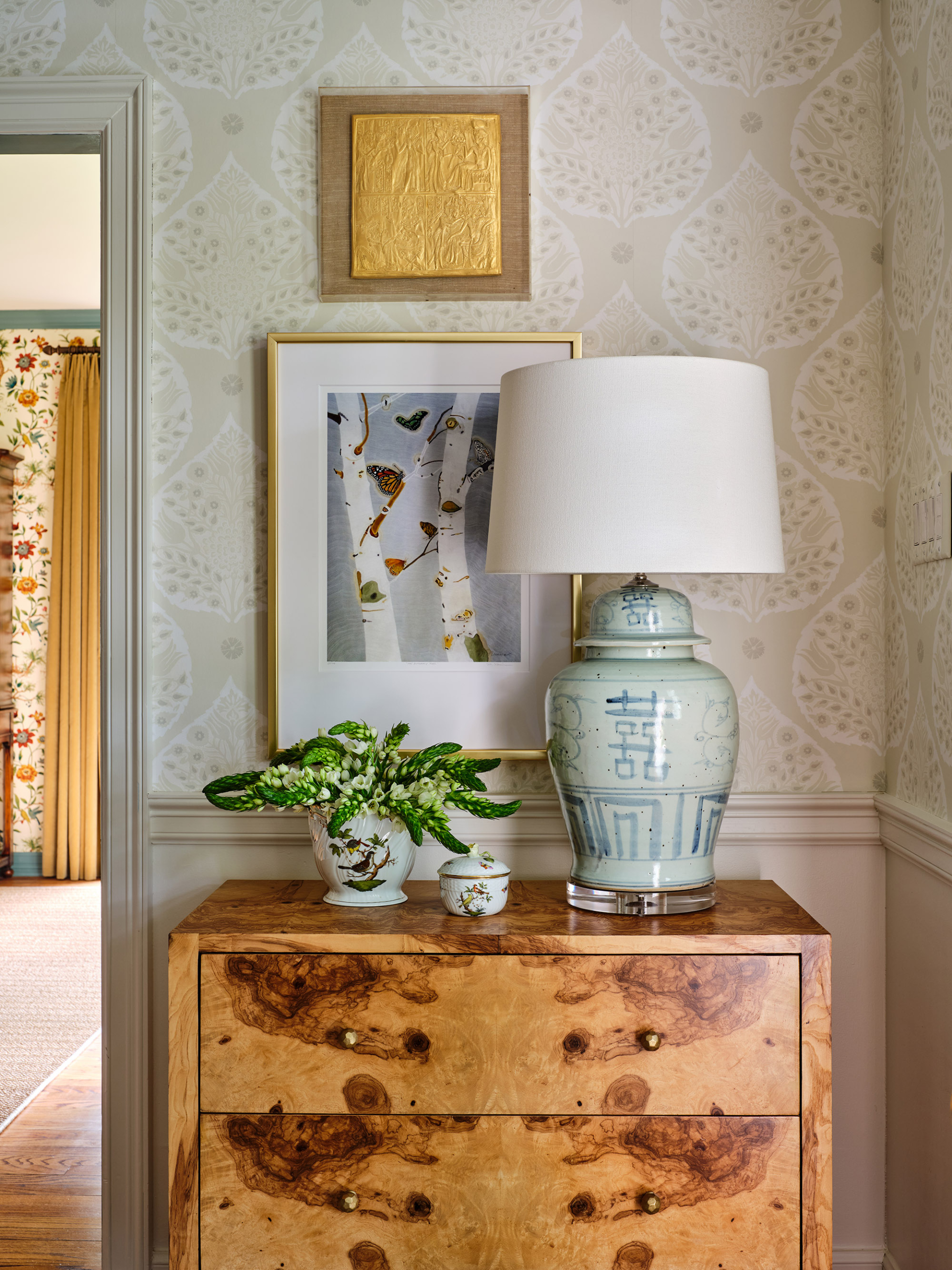 Designer Maria Beck skillfully wove together color, pattern and styling to reflect the homeowners’ tastes in this elegant Alamo Heights residence. We loved seeing this home evolve as spaces got updated with sophisticated wallpaper installations and fresh color palettes. Upscale, traditional design at its best! Photos by Matthew Niemann.